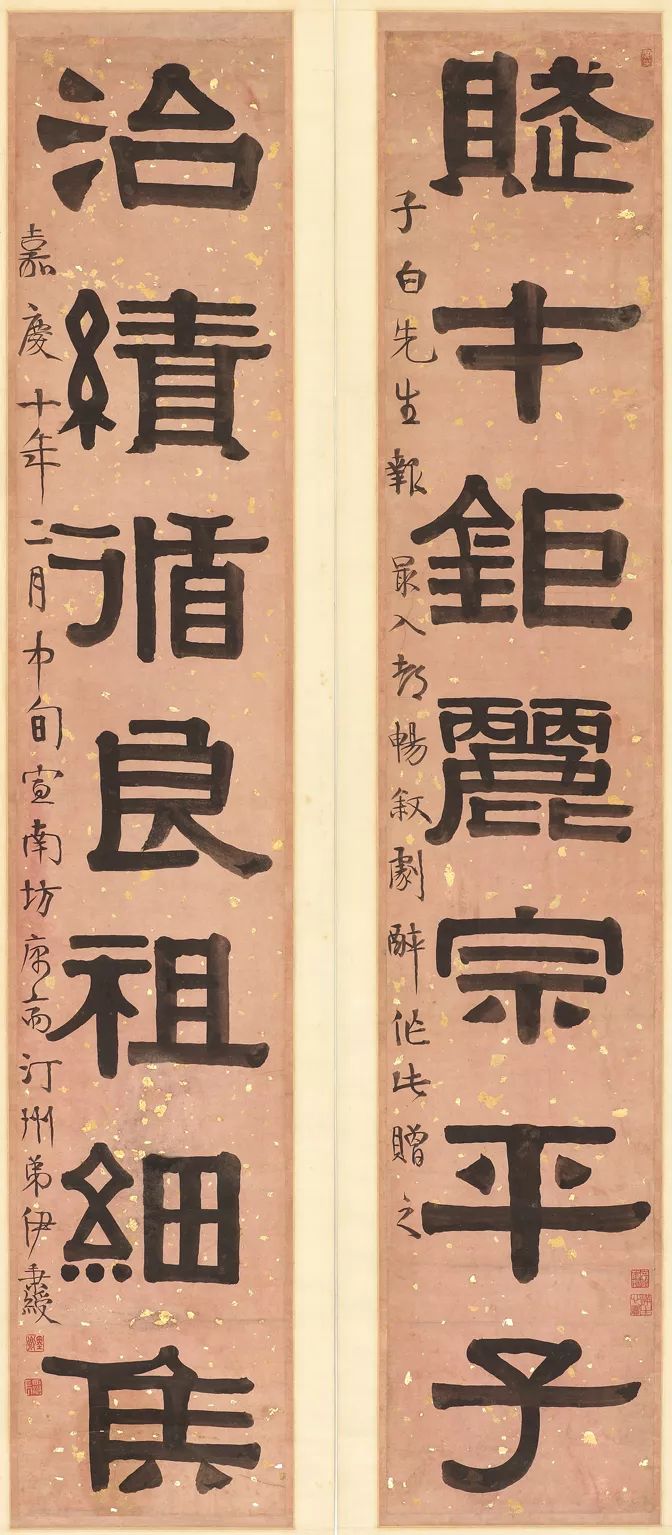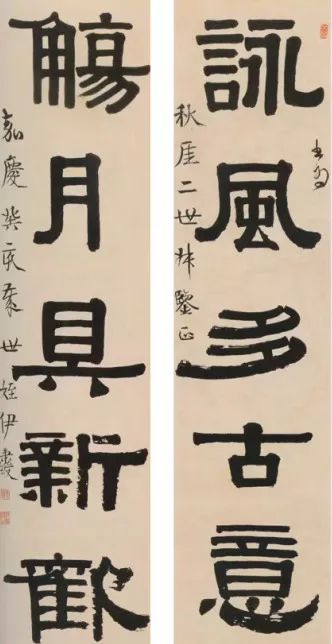 伊秉绶 隶书五言对 30.9x120.6cmx2