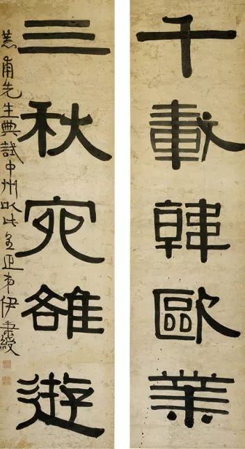 伊秉绶 五言联纸本隶书 123×20cm×2