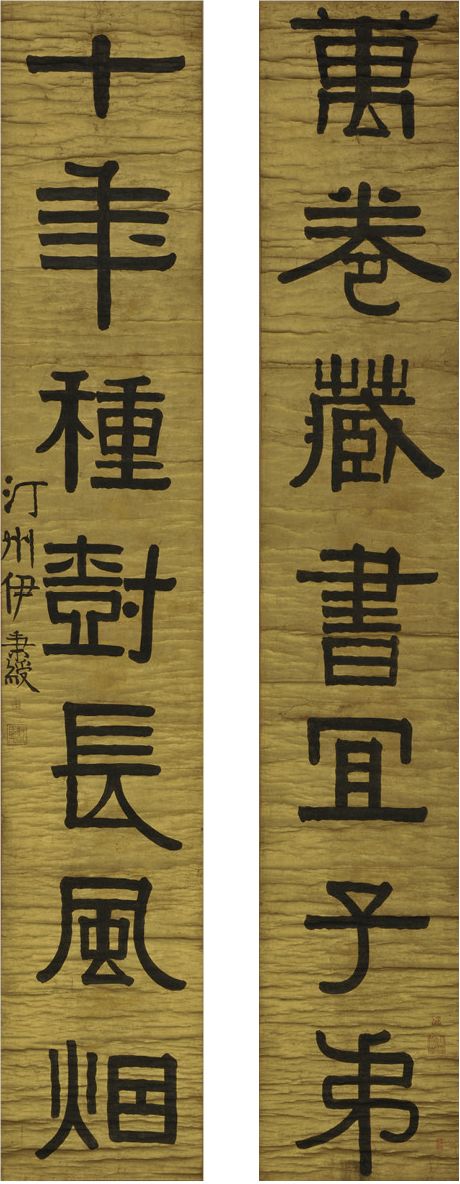 伊秉绶喜绘画、治印,亦有诗集传世。工书,尤精篆隶,精秀古媚。其书超绝古格,使清季书法,放一异彩。隶书尤放纵飘逸,自成高古博大气象,与邓石如并称大家。
