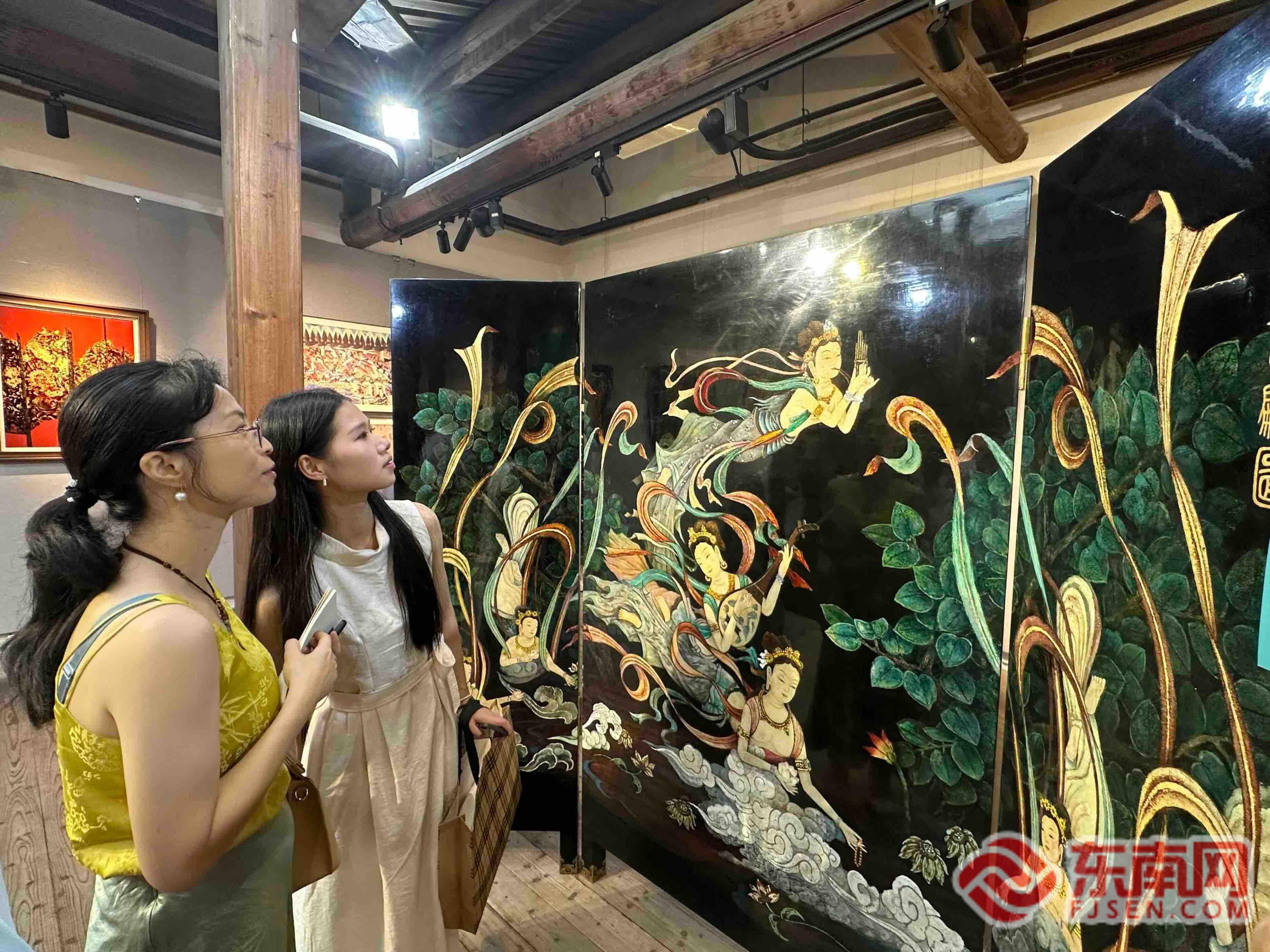 东南网8月15日讯(本网记者 陈楠 文/图)今日,一场“艺海扬帆——福建省工艺美术大师艺术作品传承展(第五场)漆髹敦煌专场”在福建省海峡民间艺术馆开展。