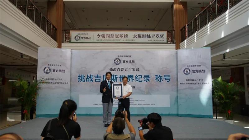 千年窑火淬瑰宝,世界认证载誉来。8月20日上午,在中国古典工艺博览城,吉尼斯世界纪录认证官杨绍鹏先生庄重宣布:“仙游青瓷五百罗汉成功挑战吉尼斯世界纪录‘最大规模瓷雕像’称号!”现场顿时掌声雷动,与会嘉宾共同见证了这一属于仙游青瓷、属于中国非遗的高光时刻。