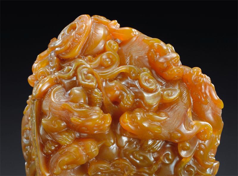 作品中的九条螭虎姿态各异,却都透着沉着威严的气势,线条刚柔并济,文雅与华贵之气兼具。