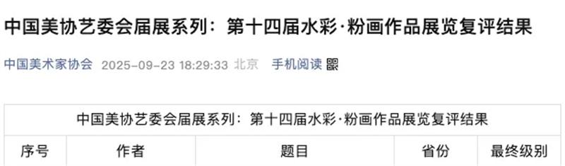 2025年9月23日,由中国美术家协会、黑龙江省文学艺术界联合会主办的“中国美协艺委会届展系列:第十四届水彩·粉画作品展”复评结果出炉。我院名誉院长孙志纯作品《高峰》入选。