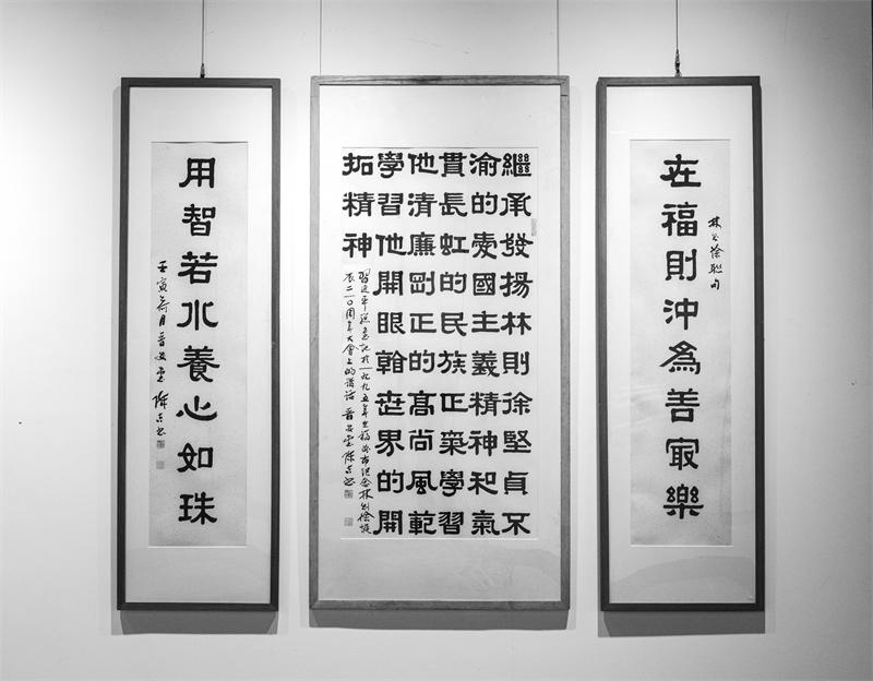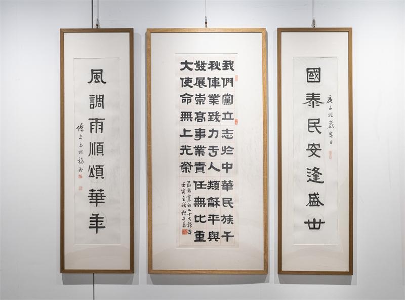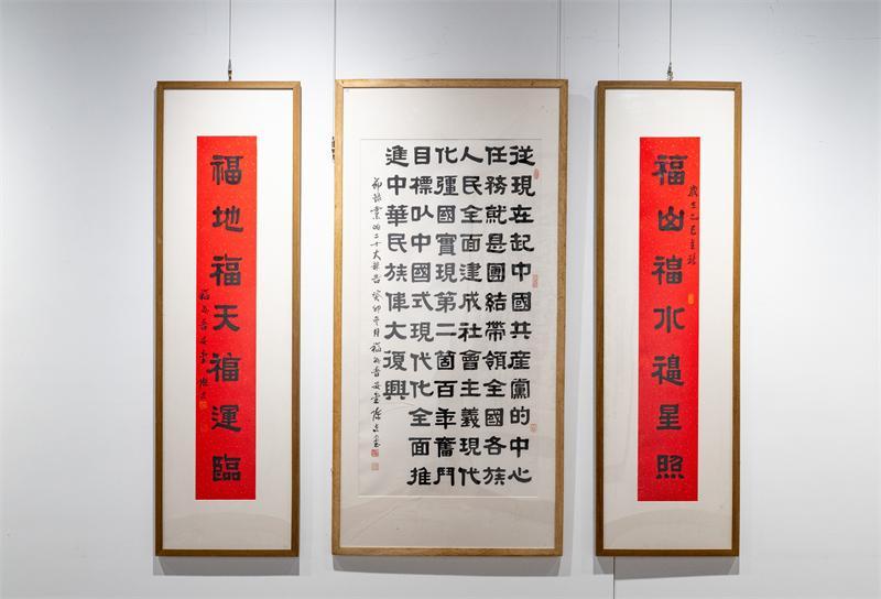 中国国家画院原院长卢禹舜在为展览所作的序言中,以“端妍”二字精辟概括了陈吉的艺术特色。他指出,陈吉的作品首先“内容正”,充满正能量;其次“取法高”,其隶书取法清代隶书大家伊秉绶而能学古出新,自成面貌;再次“风格妍”,变伊秉绶的雄强朴拙为清健妍美,形成了“不激不厉中透出淡泊和沉静之气”的独家风貌。而这一独特艺术风格的形成,源于陈吉始终坚持“书写时代,服务人民”与“追求美善,雅俗共赏”的创作理念。他的创作紧贴时代风尚和大众审美,以老百姓喜欢、老百姓认为美为创作基准,此前在北京、福州等地举办的“清俊雅正”“福语吉言”等主题书法艺术展览均因作品雅正、新颖、接地气而广受好评。