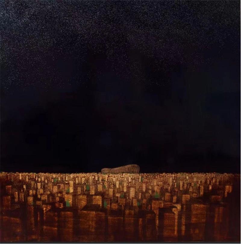 饶碧凤 漆画《镜像NO·2》80x40cm