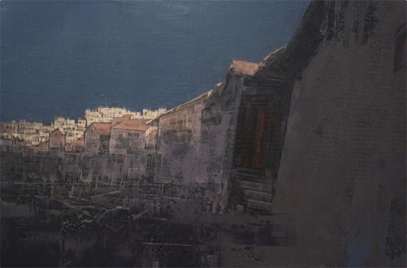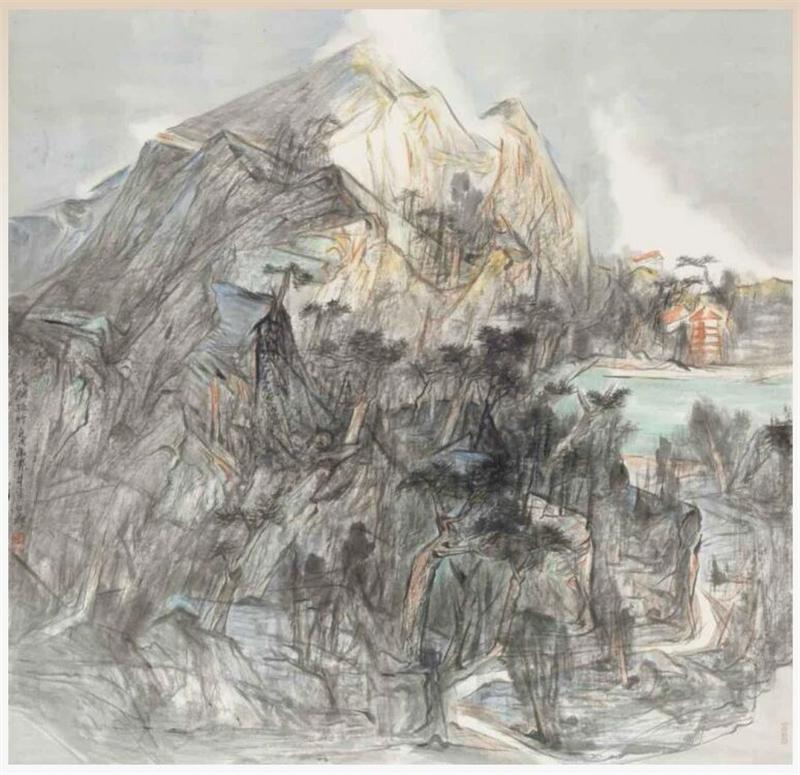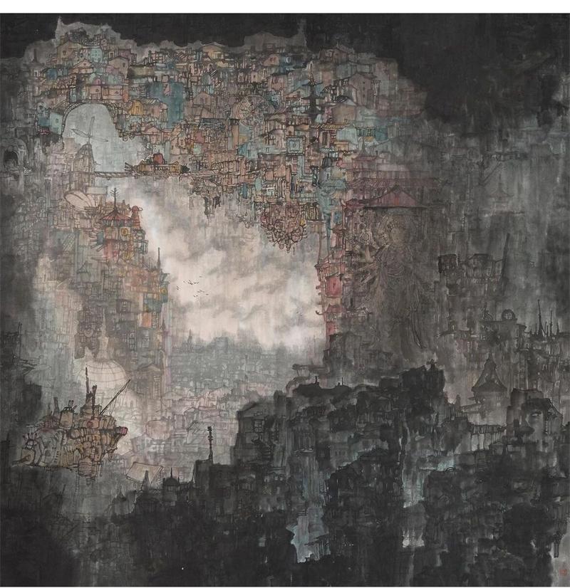 左文辉 中国画《淡烟疏⽵⽔边城》136x136cm