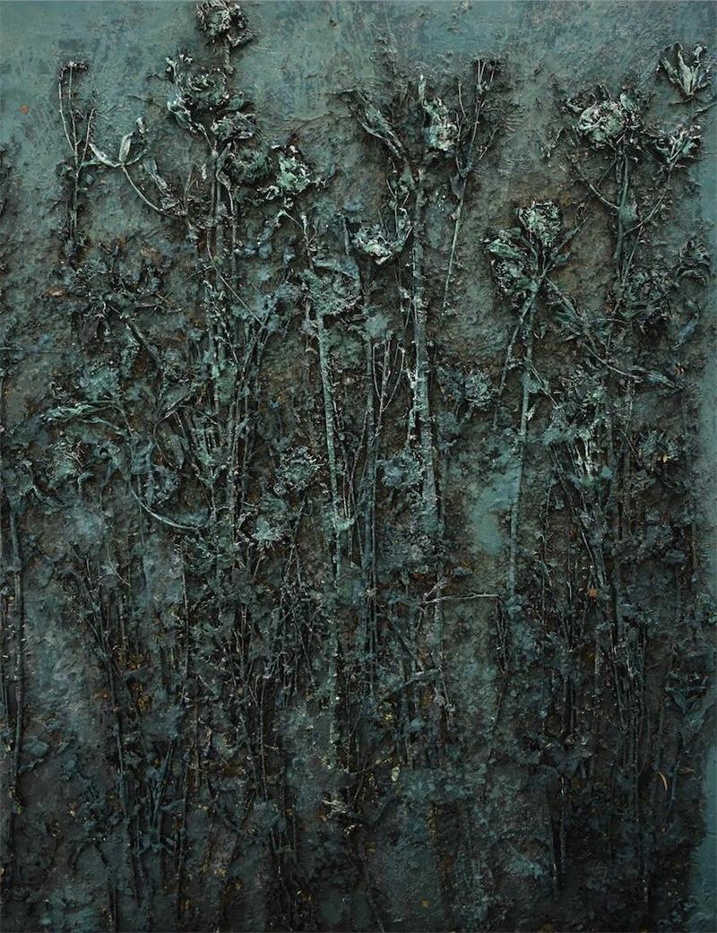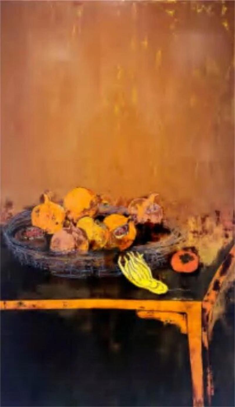 郭子健 漆画《绿幻赤芒》 38x88cm