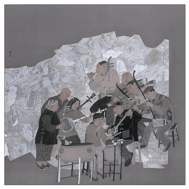 林伟立 中国画《歌一曲祖国好》96x96cm