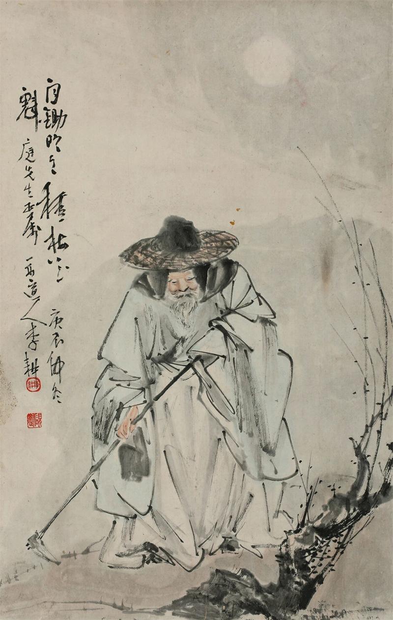 李耕设色《自锄明月种梅花》图轴仙游县博物馆藏