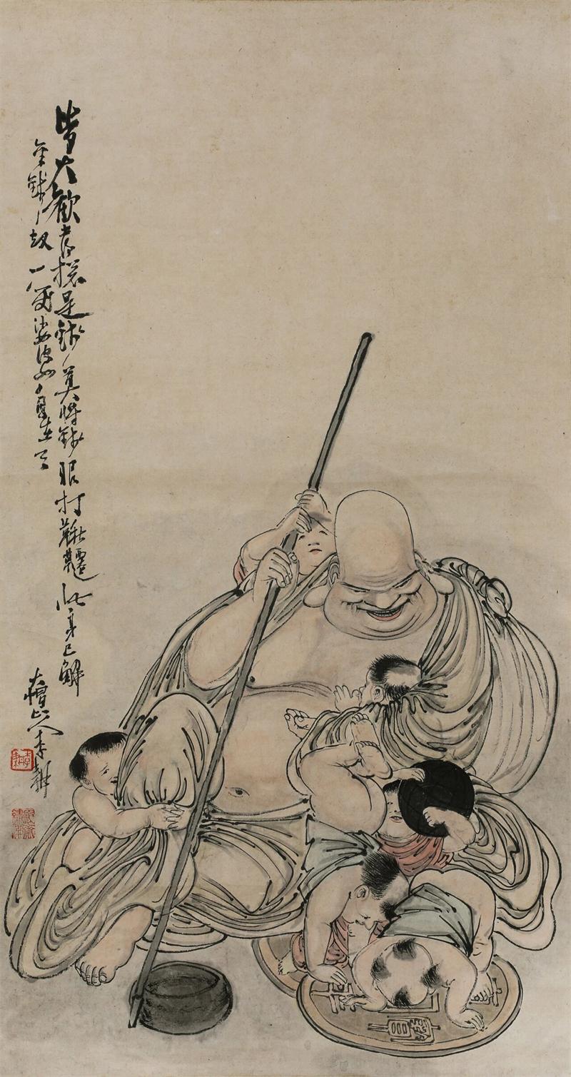 李耕设色《六子戏佛》图轴仙游县博物馆藏