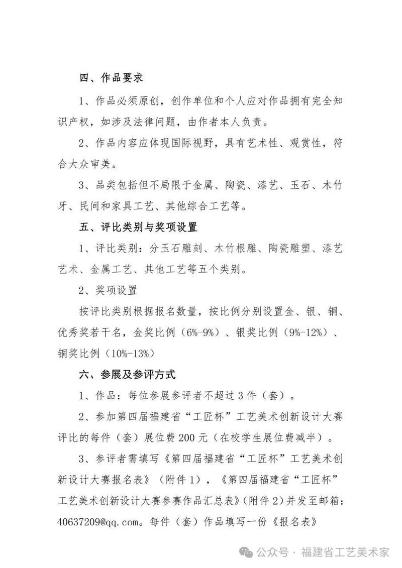关于举办第四届福建省 “工匠杯”工艺美术创新设计大赛的通知
