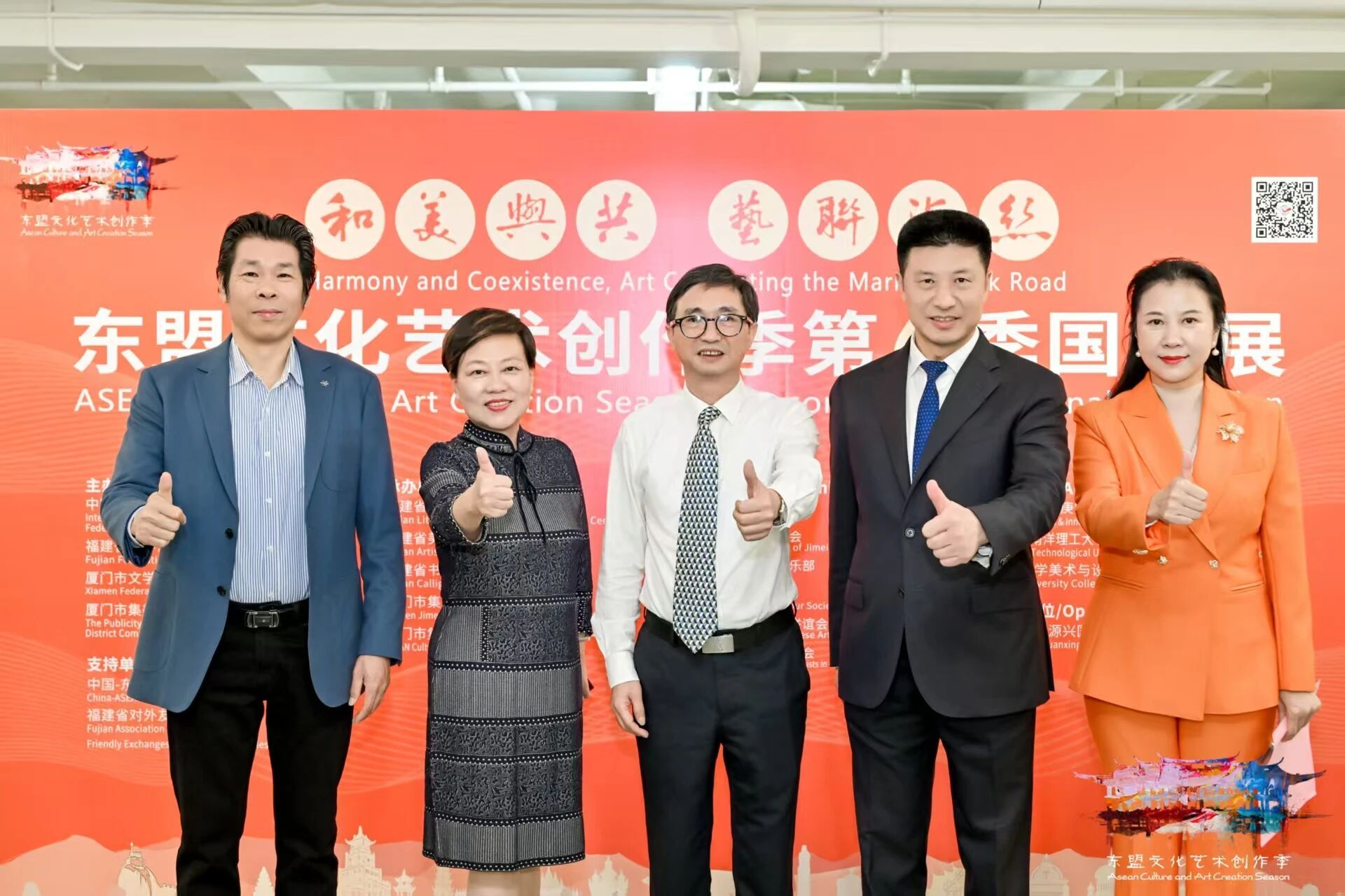 11月5日,由中国文学艺术界联合会国际联络部、福建省文学艺术界联合会、厦门市文学艺术界联合会、厦门市集美区委宣传部联合主办,福建省文学艺术对外交流中心、福建省美术家协会、福建省书法家协会、厦门市集美区文学艺术界联合会、厦门市集美区东盟文化经济交流中心承办的“和美与共 艺联海丝”东盟文化艺术创作季(第六季)国际展在厦门市集美区东盟文化经济交流中心启幕。泰国驻厦门总领事馆总领事善善乐,新加坡驻厦门总领事馆总领事庄志嘉,菲律宾驻厦门总领事馆总领事梅伟达,中国文联国际联络部副主任朱孟宇,福建省文联主席陆开锦,福建省文联党组成员、副主席、书记处书记曾章团等领导嘉宾出席开幕式。