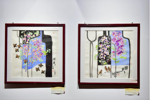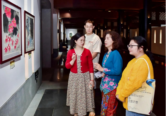祖籍福建惠安的马来西亚著名华裔艺术家朵拉(Duola,右二)介绍作品