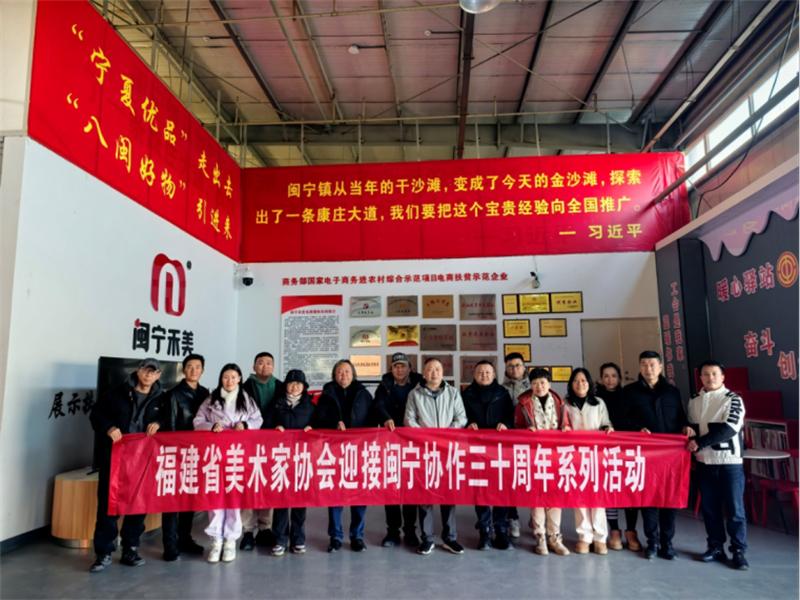1997年4月,闽宁协作对口帮扶领导小组作出战略决策,将西海固不宜生存地区的贫困群众吊庄搬迁到银川河套平原待开发的地区,命名为“闽宁村”。近30年来,闽宁两省区干部群众遵循“优势互补、互惠互利、长期协作、共同发展”的指导原则,引企业、育产业、惠民生,形成葡萄酒、菌草、黄牛、劳务经济等特色产业,从最初8000人发展成6.6万人的移民示范镇,走出一条东西协作的脱贫之路、产业支撑的致富之路、生态优先的发展之路、民族团结的和谐之路。曾获“全国民族团结进步模范集体”“全国脱贫攻坚奖”等称号。福建省文联、省美协与宁夏美术工作者共同走进闽宁镇,感受三十年“干沙滩”变“金沙滩”的非凡历程。