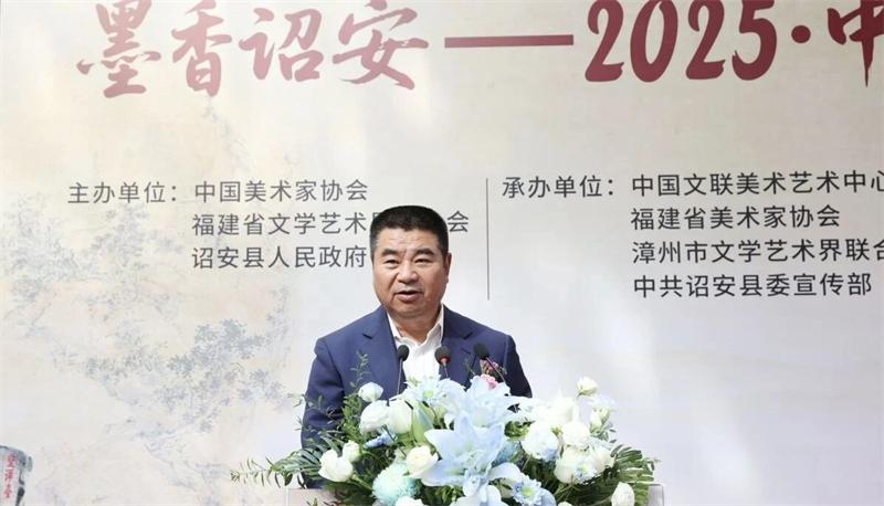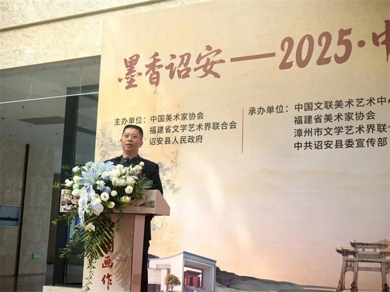 王来文对此次展览的成功举办表示祝贺并宣布开幕。王来文在致辞中提到,“墨香诏安——2025·中国画作品展”既是一场中国画与诏安文脉的深情相拥,更是一次践行习近平文化思想、推动中华优秀传统文化创造性转化、创新性发展的生动实践。当前,全国上下正深入学习贯彻党的二十大和二十届历次全会精神。新时代新征程,美术工作者肩负着“传承中华优秀传统文化、建设中华民族现代文明”的重大使命。诏安有着千年书画基因,他希望以此次展览为契机,创作出更多思想精深、艺术精湛、制作精良的精品力作,让古老的文化瑰宝焕发新的时代光彩,以美术力量凝聚民族复兴的磅礴动能。