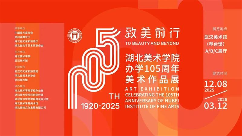 2025年12月9日,由中国美术家协会、湖北省教育厅、湖北省文化和旅游厅、湖北省文学艺术界联合会指导,湖北美术学院、武汉美术馆主办的“致美前行——湖北美术学院办学105周年美术作品展”在武汉美术馆(琴台馆)开幕。展览展出了湖北美术学院办学105年来部分师生的400余件作品,彰显了湖北美术学院“为时代画像、为时代立传、为时代明德”的艺术传统。