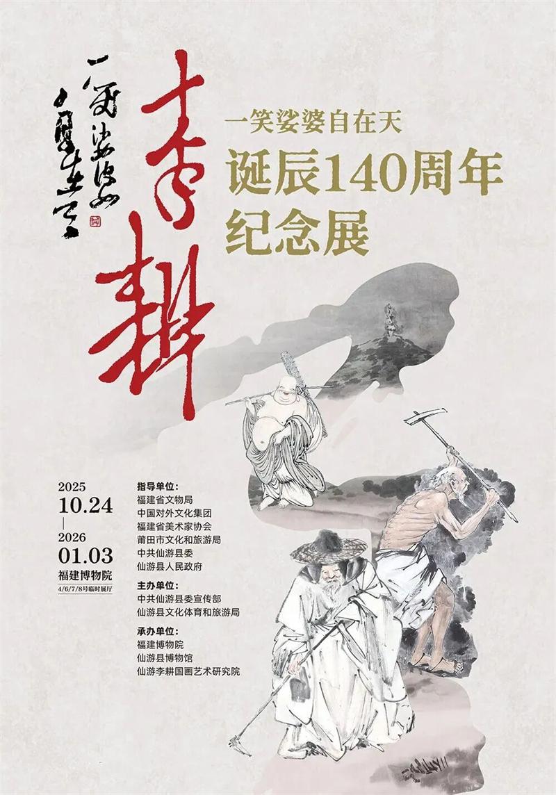 展览标题“一笑娑婆自在天——李耕诞辰140周年纪念展”源自仙游县博物馆藏的李耕抗战时期代表作《六子戏佛》题画诗,短短七字既是弥勒佛豁达境界的写照,更是艺术家精神的凝练。本次展览集结仙游县博物馆、仙游李耕国画艺术研究院、福建博物院等单位收藏的120余件珍贵展品,带您走进艺术巨匠的世界。
