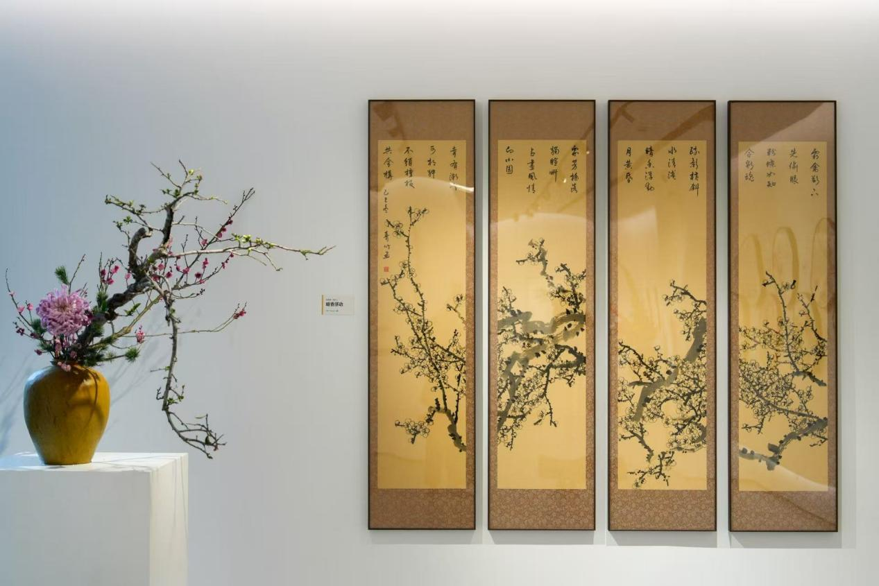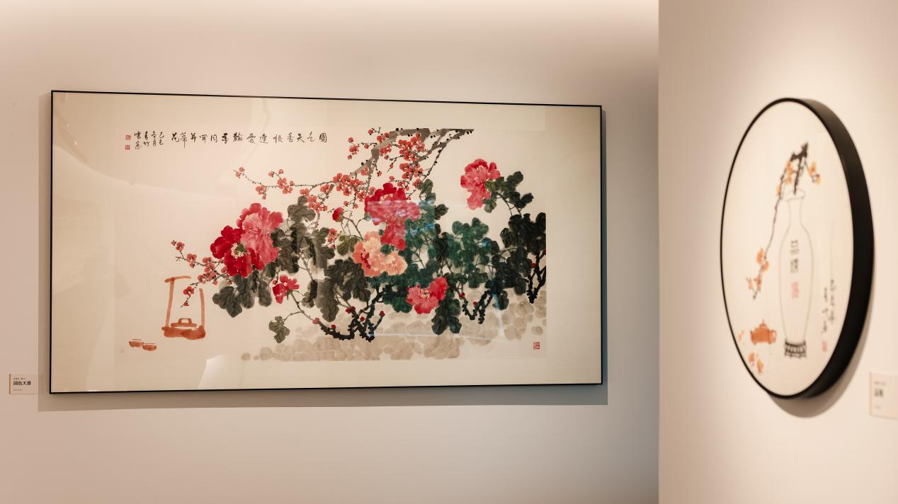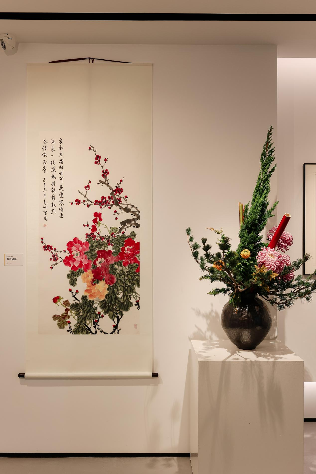 此次展览中,陈青莉聚焦牡丹、梅花、茶等主题创作了《草木同春》《一瓯春色》等作品,将写意画“以形写神”的精髓巧妙呈现。常定华带来的多件中华花艺作品,以花枝的自然形态传递东方美学,二者珠联璧合,让观者在笔墨流转间,读懂两岸文化同源的深刻内涵。