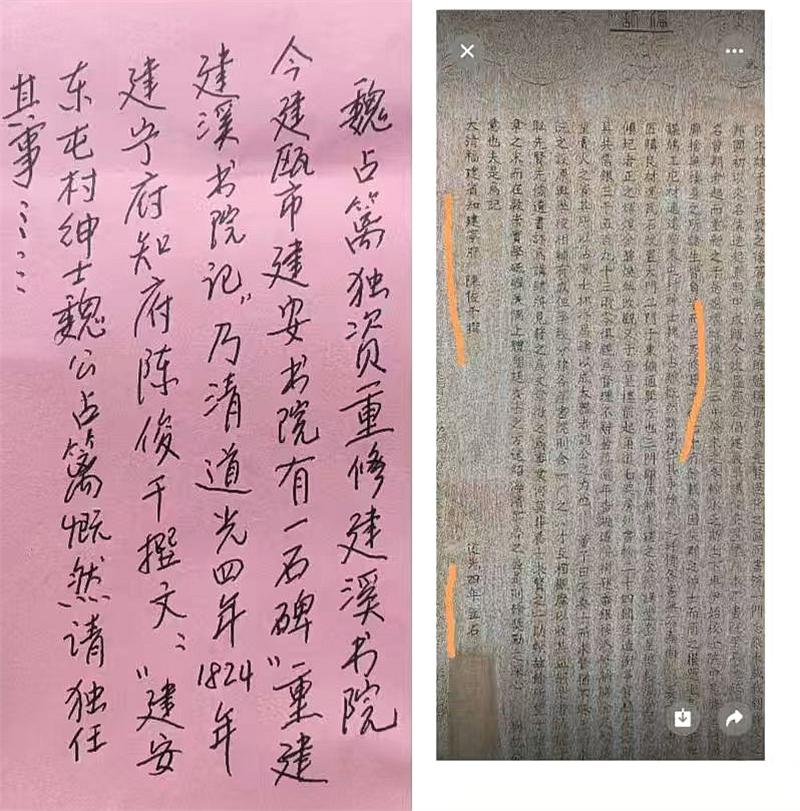 另据清知府陈俊千在《重新建溪书院记》中说,清道光三年(1823),建宁府建溪书院(原名建安书院)年久失修,亟待抢救,知府陈俊千、知县包干臣召集地方士绅商议捐资修缮,绅士魏占离慨然“请独任其事”,他独资承担白银3593两,亲自督工,逾年告竣。道光时期,知县一年的俸银仅约45两,魏占离独资修建书院一下子就送出了相当于一位知县近80年的合法收入。散尽家财,投身公益,魏公可称古今典范。事实上,魏占离的善举远不止于此。据镇志记载,他还捐资重建府学大成殿、重修东峰紫芝书院;建义仓救济平民;筹善款兴建东峰月岭塔,修漈下桥官坝长达六华里,引水灌田千余亩;他设义山供贫民安葬,设义渡方便行旅,打深井解决乡民饮水,整治延平蚺蛇险滩使翻船事件大减。因这些义举,清廷降旨封其为朝议大夫。他去世后,朝廷加封其为正三品通议大夫,县里还将他与知府陈俊千合建一祠,名曰“陈魏德爱祠”。“德爱”,名得其所。