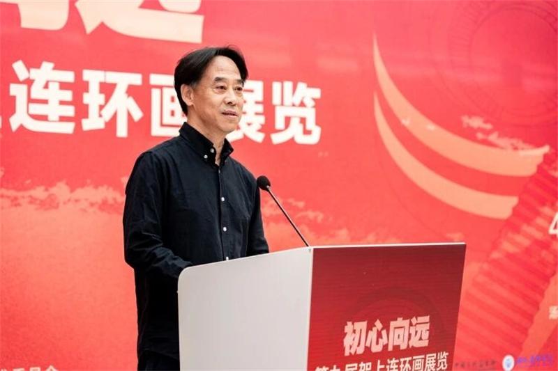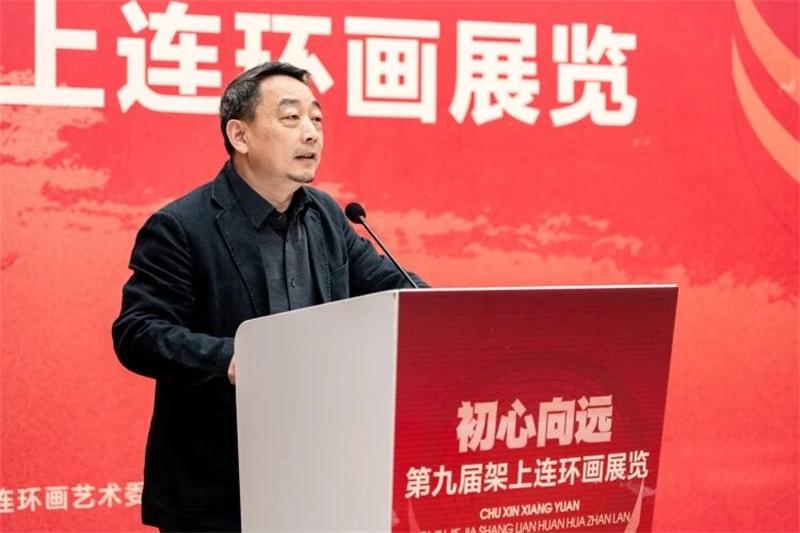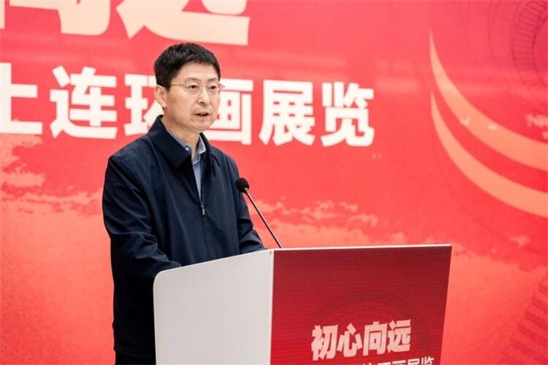 屈健致辞并宣布展览开幕,他表示,连环画是中国本土最具群众基础的大众叙事艺术。本届展览以“初心向远”为主题,作品在叙事语言更加多样、艺术表达勇于突破、创作导向鲜明坚定等三个维度集中展现了连环画艺术守正创新的时代风貌。希望广大连环画艺术创作者始终坚守人民立场,筑牢创作之根,让连环画真正成为“为人民抒情、为人民抒怀”的叙事载体;坚持守正创新,把握发展之要,实现艺术价值与时代价值的双重升华;加强代际传承,夯实人才之基,让连环画这一“中国叙事”的文脉薪火永续、代代相传。希望以此次展览为新的起点,共同推动中国连环画事业在新时代续写新篇章。