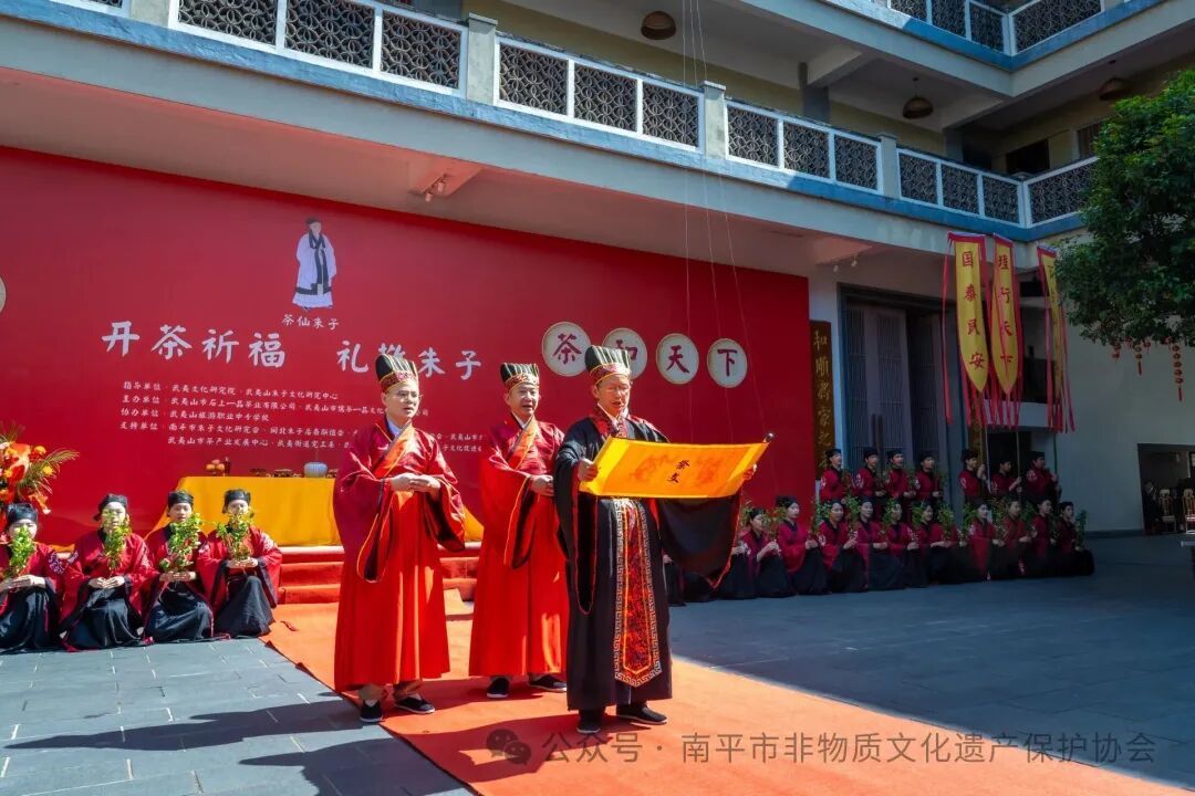 调研期间,陈吉一行先后深入非遗项目企业石上一品、骏德等重点茶企,并参加武夷山市非物质文化遗产代表性项目“开茶祈福 礼敬朱子”活动,现场沉浸式体验武夷山开茶传统礼节,亲身感受朱子文化与武夷茶文化的深度融合。