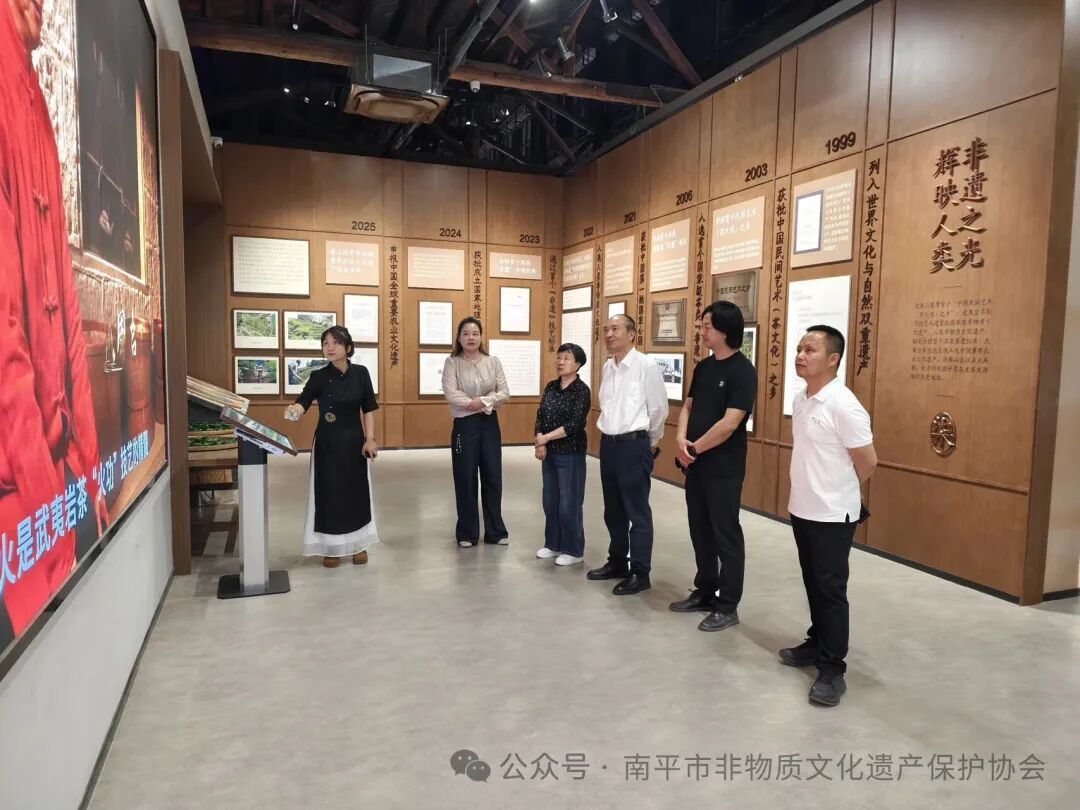 随后,陈吉一行前往正在建设中的大武夷非遗展示馆(暂名)进行指导。他认真察看各类非遗展陈内容,细致了解武夷山非遗资源保护、场馆建设与公众普及工作,强调要持续优化展陈体系、创新传播方式,让非物质文化遗产更好贴近群众、融入生活。